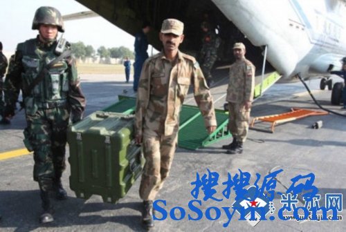 参加“友谊-2011”中巴反恐联合训练的首批中方人员搭乘空军运输机,于当地时间15日上午9时抵达巴基斯坦伊斯兰堡。图为巴方人员协助中方人员搬运物资